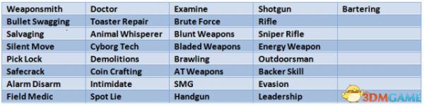 以上为暂时翻译,由于很多技能的名字很奇怪在废土1中也找不到同名的技能。