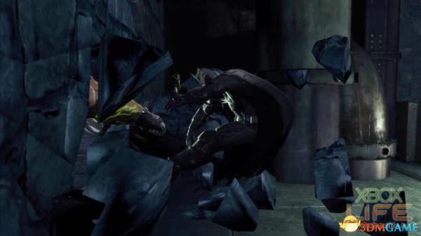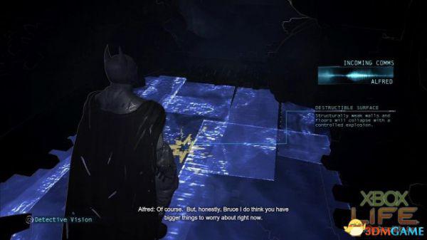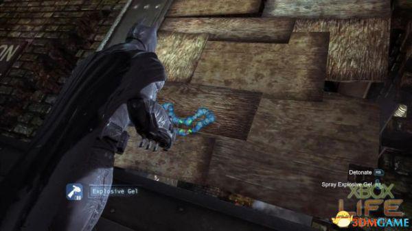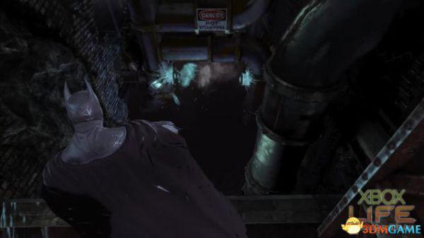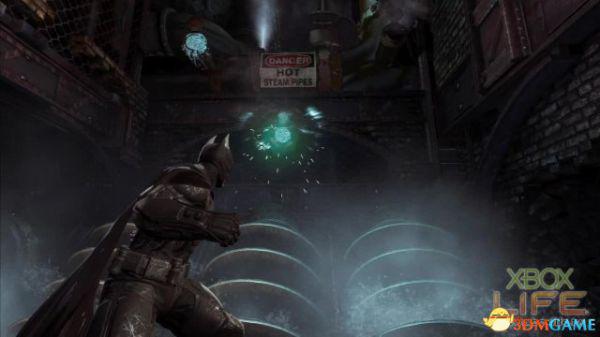 第二招是躲在沟渠裡,等班恩靠近再按Y键跳出来推他去撞墙,不过这招损伤比较少,而且会被班恩骂小孬孬。班恩损伤到一定程度时会有干扰器让阿蝙的侦探视点失灵,小编我是建议与其冒风险去找那个干扰器,还不如直接肉眼观察班恩就好。