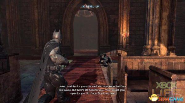 请进入前方有栅栏的那道闸门,一路通过处刑室来到教堂,阿蝙朝思暮想的小丑就在那里等着。