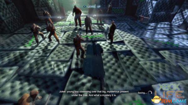 这场掠食者战斗最大的特性就是阿蝙一开始是处于较低的位置,而且地形也比之前复杂。建议大家一开始先用无声击倒摸掉一些敌人后,再伺机用绳索爬到石像上会比较安全。打倒所有囚犯之后,来到中间的房间为Harleen松绑。
