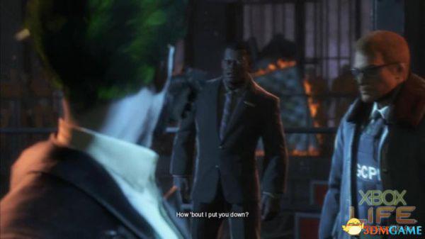 所幸高登及时用球棒制伏了狙击手,眼见情况不利的Killer Croc只好向阿蝙说「想要小丑是吧?尽管整碗端去啊!」然后就落跑了。此时一群小丑的爪牙挡住阿蝙与高登的去路,不过连TN-1班恩都打赢了,我想这群爪牙应该完全不构成威胁吧?打倒这群爪牙后,高登留下来照顾典狱长。