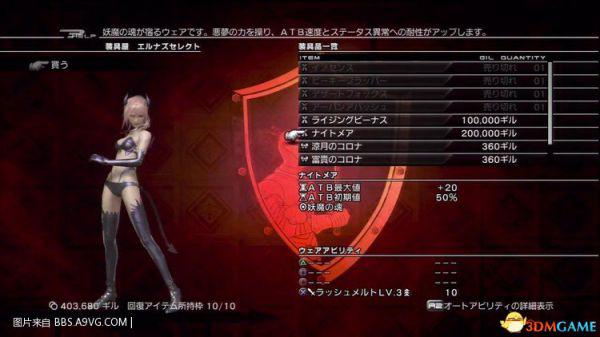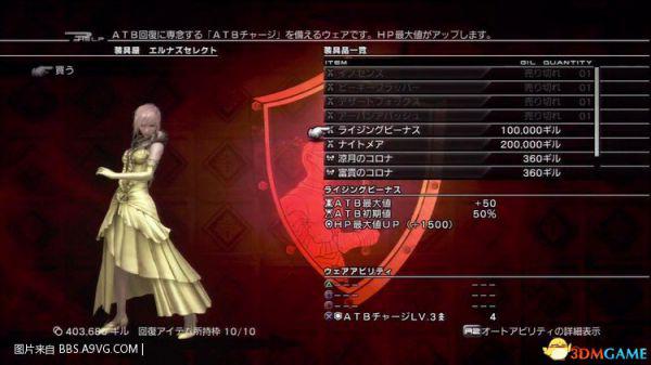 最终幻想13:雷霆归来 14天最终BOSS前商店装备一览