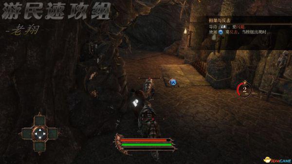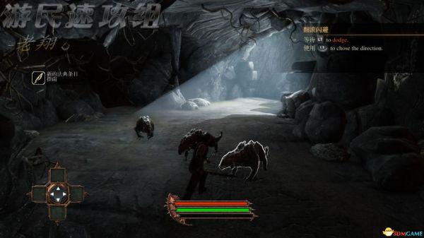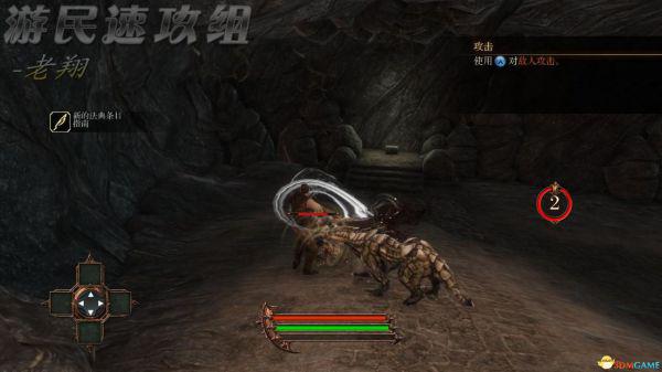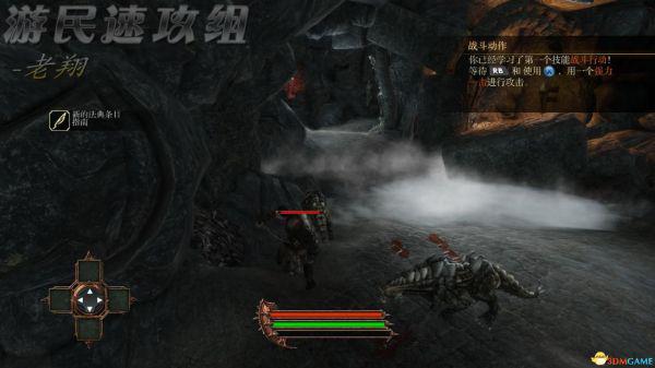 接着前进又遇到狼蜥,按住LB键,当狼蜥头上出现“X”的时候按X键可以进行强力的反击。