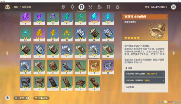 像我因为是主练的凝光和卢姥爷,四风原典加狼末需要12个金色的狮牙斗士,目前已经刷齐