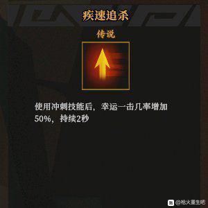 幸运加的很多,配合高级跑鞋就能做到几乎常驻50%幸运,只要冲得合理输出便能提升不少。缺点也当然是要留意躲避敌人的关键攻击。对于不怎么冲刺的人优先级偏低。