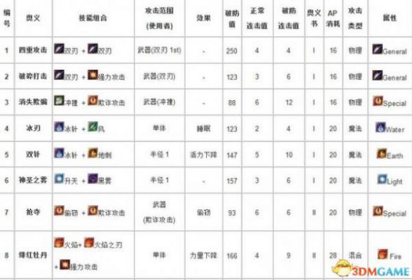 《阿加雷斯特战记》组合技能出招表,汉化版。