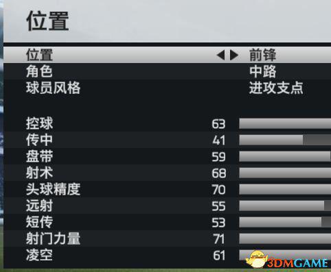 球员名外貌什么的就略过了。。。到这里,观察球员数值,比如控球63