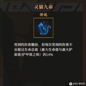 在《枪火重生》这款游戏中,有着很多效果独特的秘卷,灵猫九命就是其中之一,玩家“49475147”带来了《枪火重生》灵猫九命秘卷组合推荐,来看看该秘卷比较适合和什么秘卷搭配使用吧。