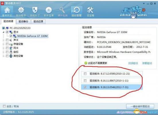 驱动精灵驱动管理选择显卡,然后选择最新的日期的驱动,在一键安装