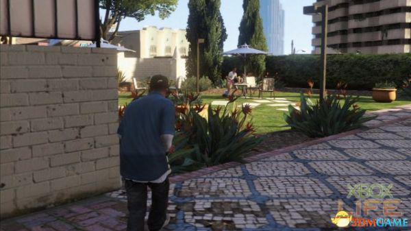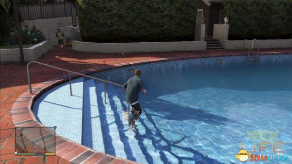 接着我们就必须跟着比佛利潜入波比.米雪儿的豪宅里,这时候玩家可以用LS来进入潜行模式,进入豪宅之后只要跟着熟门熟路的比佛利一起走就不会有问题了。其中玩家会经过一个游泳池,想达成金牌的朋友们记得要先走进泳池一下,才会完成浅尝即止的任务条件。