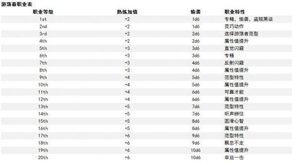 你的偷袭伤害也将会随游荡者职业等级的提升而提高,其具体数值见“游荡者职业表”。