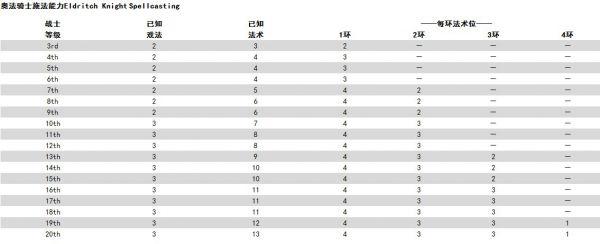 “游侠职业表”中“已知法术”一栏记录了你获得更多已知法术时的相应等级。你只能获取已有相应环阶法术位的法术。比如,当你达到第5级时,你将获得一个1环或2环法术。