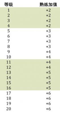 熟练是5版规则里的一个重要概念,熟练度基于角色等级,同等级的角色拥有相同的熟练度加值。