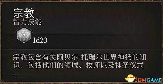 玩家会投20面骰子,投掷结果加上智力调整值后再与该信息的宗教难度(DC)进行对比,不小于DC就算成功。