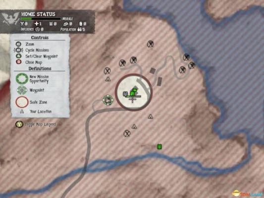 大家可以看看,大地图上面。打叉的就是搜索了的,没打叉的就是要搜索的,爬到高处可以和刺客信条里面一样把目标和未探索的建筑给定位。