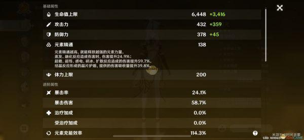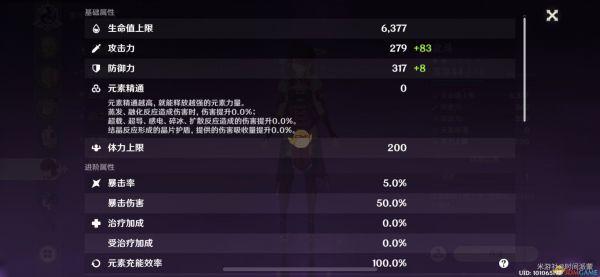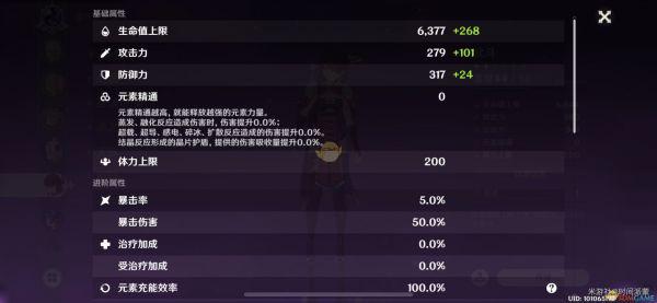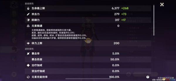 我们把圣遗物卸下,装上另一个加6.3%攻击力的圣遗物后{基础攻击力加成(绿色)}变成了73,符合279*(0.197+0.063)的计算