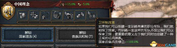 11 大明最后的“效仿八旗”改名为“卫所制改革”初始加成的省份贸易力量从10%增加到15%,