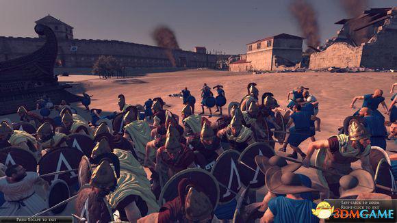 终于与守军正面交战了 杂牌民兵面对斯巴达英雄们果断几秒就萎了。。。