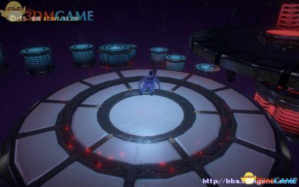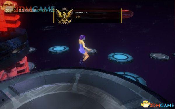 第二个目标是探索裂隙,这里要玩一个跑酷小游戏,在不同的平台间跳跃,将红色的平台变成蓝色,落点离中心越近会得到越多的奖励点数,速度越快得到更多的速度增益。此任务要取得好成绩,需要学习无限冲刺和滑翔技能。