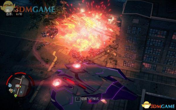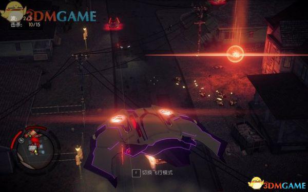 第五个目标是收集病毒,其实就是夺取外星人的飞船,将它开到指定地点。飞船的驾驶操作:WSAD方向,Shift攀升,Ctrl下降,F切换飞行模式(快速飞行和垂直起降)。完成此任务可获得奖励:UFO,以后有它在城市里往来穿梭方便多了。