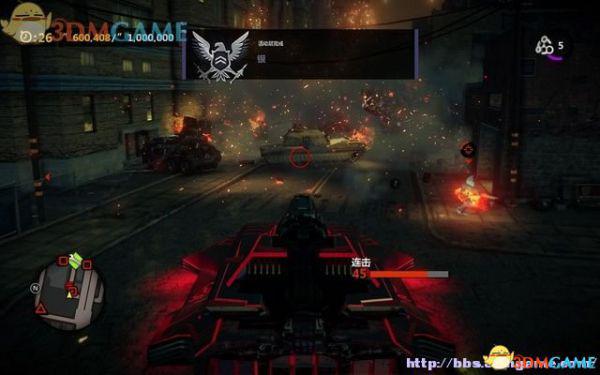 第三目标是坦克大破坏,在时间内尽量摧毁高价值目标,比如聚集的车辆,密集的公共设施等,轻松可以打到30万。适当的游走切换街道寻找新的目标,银牌(60万)也是可以轻松拿到的。完成得到外星坦克一辆。