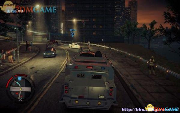 第三个目标是收集病毒,也就是劫持一辆警方保护的装甲车送到指定位置。第四个目标完成跑酷比赛,在获得无限冲刺技能后,这种小游戏比较容易完成。如果再学习滑翔技能的话更是锦上添花,中途会遇到一条河,可以直接飞过去。