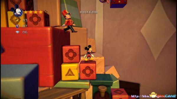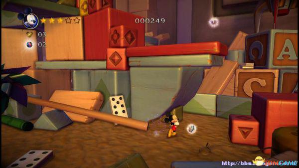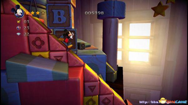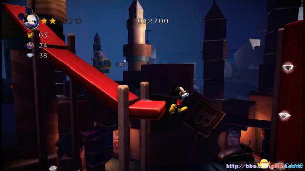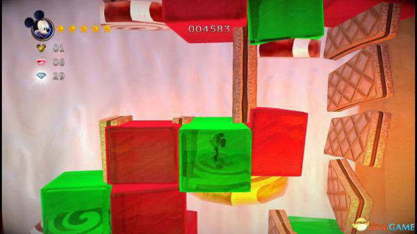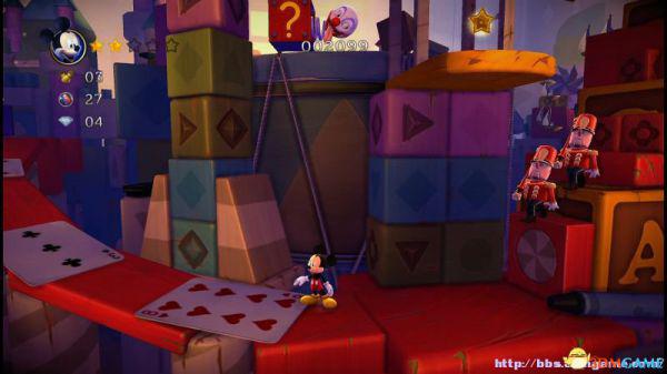 step13.此时米奇会快速从此前所经历的积木斜坡快速落下,如果此前没有获取的钻石都有机会重新获取。