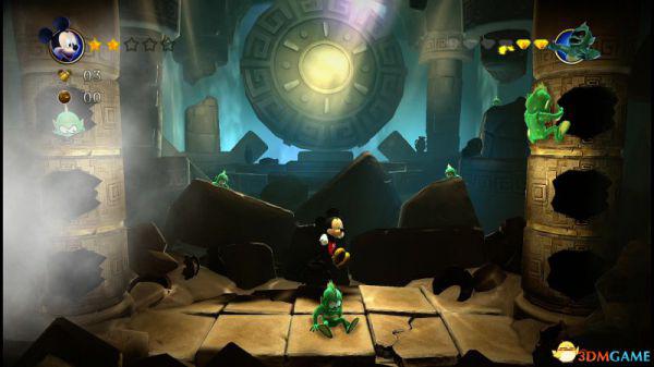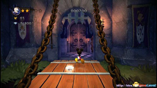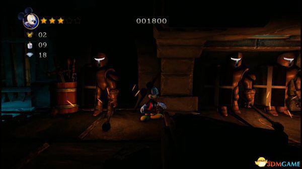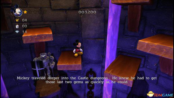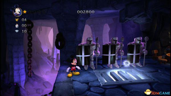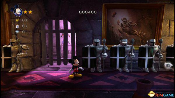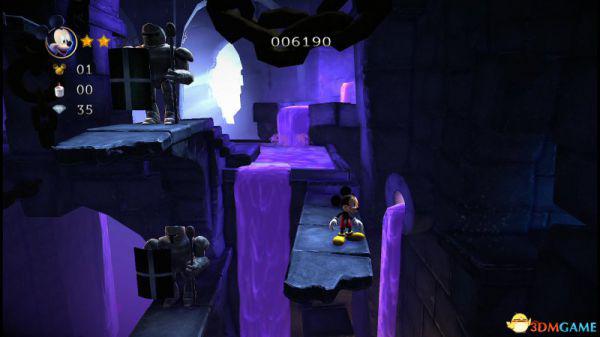这就意味着米奇如果想快速通过,那就选择以跳跃的方式(落点均在盔甲的左侧盾牌前),便能轻松通过。