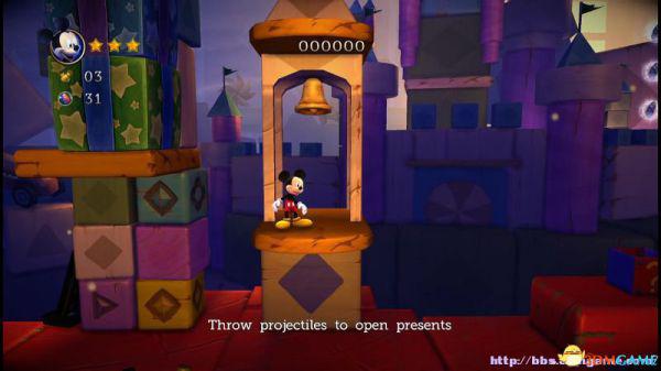 ②.(1~5血)当修理工被米奇踩踏后,便会从场景四周掉落四嗰大钟。只要不站在四周既不会被大钟压到。
