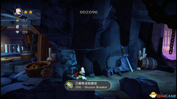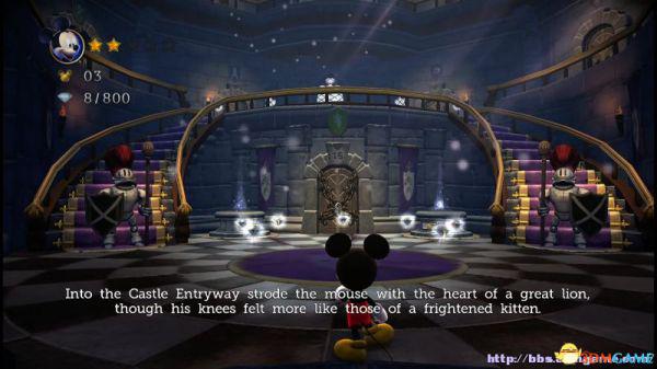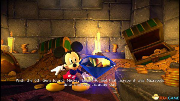 旁白:探索城堡的大厅,米奇获得了第一颗能够救出迷你的红色彩虹宝石,他知道他还得找到其余的,而且那些神秘的幻想不会就此善罢干休。