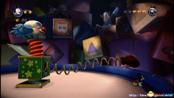 (即便是一开始踩在小丑头上,当它弹出来时,会造成米奇受伤。)