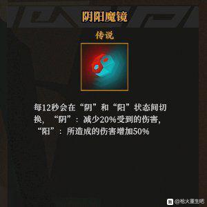 阴阳魔镜是《枪火重生》这款游戏中的一个秘卷,让玩家的伤害输出忽高忽低。所以对于这一秘卷到底要不要用还是存在着一定的争议的。玩家“49475147”带来了《枪火重生》阴阳魔镜秘卷组合推荐,一起来看看吧。