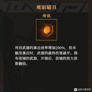 《枪火重生》鹰眼瞄具秘卷组合推荐: