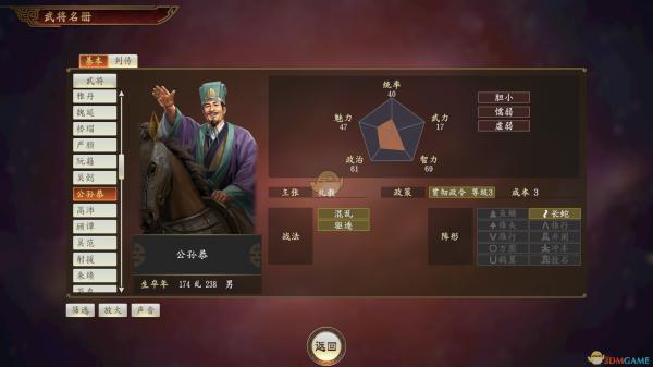 《三国志14》公孙恭武将点评: