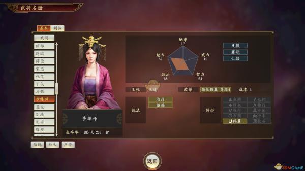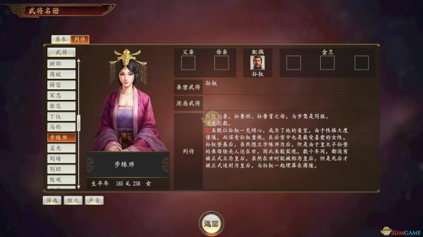 在《三国志14》这款游戏中,有着步练师这一女性武将的存在,在三国中,她是孙权的妻子,玩家可以在游戏中见到其相关的属性。玩家“abcdqqq2”带来了《三国志14》步练师武将点评,一起来看看吧。