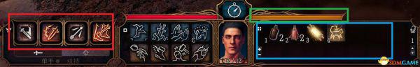 注意右上小地图红框内的三个图标,可以让玩家回营地休息、短休息或是传送。