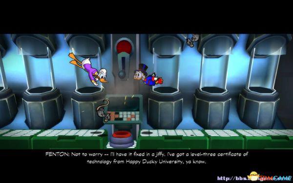 幸好麦克老鸭身手敏捷,飞来飞去重新打开了墙上的重力开关。