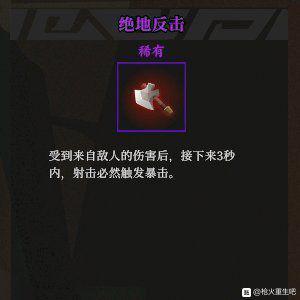 在《枪火重生》这款游戏中,有很多的小伙伴对于绝地反击这一秘卷还是相当感兴趣的,对于该秘卷的效果可以通过“49475147”的这篇《枪火重生》绝地反击秘卷组合推荐来了解一下。