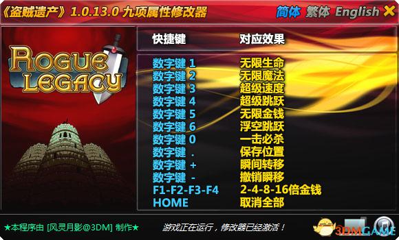 点击简体、繁体、English,可以切换语言 (切换语言后修改器将把该语言设置为默认语言)