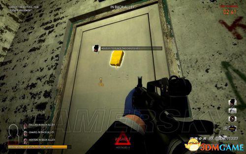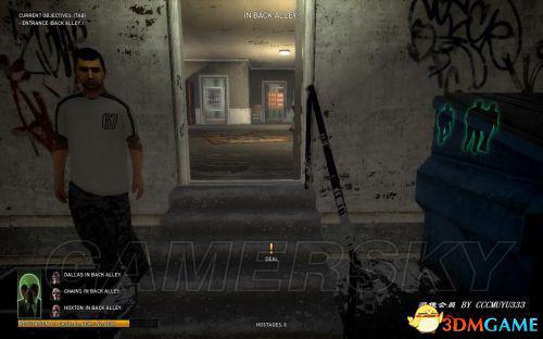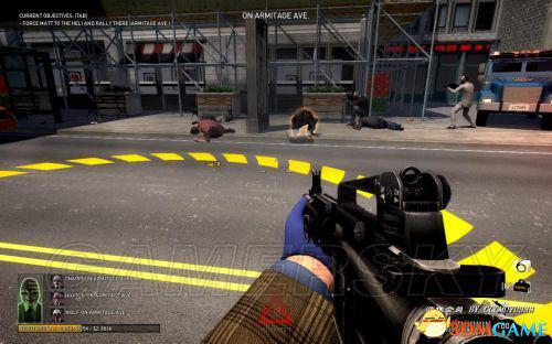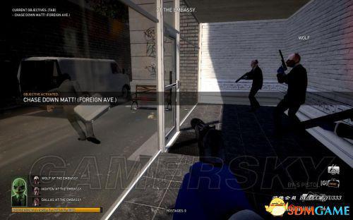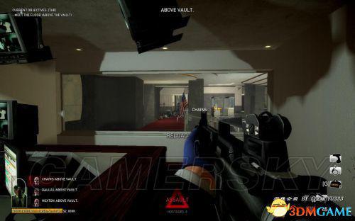 1:MATT(马特)竟然私自拿钱跑了,众面具男前去追捕。一路上很多的警察,越来越多,不过不要着急,慢慢打过去;不要远离队友,看准时机也可以冲过去自杀然后再队友复活你期间杀死几个敌人。(注意:按CTRL键蹲下时射击准星更准)