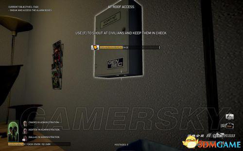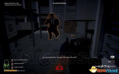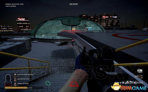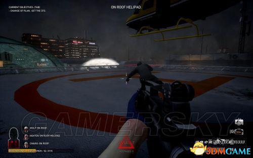 3:完美关掉3个警报器之后接到后续前去大厅输入代码,这里我被发现了;等一会儿接到后续,前去23楼找到财务总监。来到23楼找到财务总监,按F键让他去天台的停机场,并在停机场等待飞机以及防守。