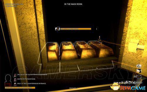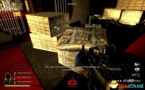 4:有了机关枪杀这些重装甲的警察稍稍好了些,等你守在门口解决完外面的敌人里面的保险柜大门也差不多破了;这时外面基本没有敌人会出现了,你需要第一时间装好金块,一共4包,我一个人要搬4趟,无语···