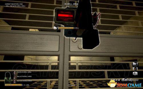4:拿到电脑回到钻头处继续,每次钻头停了就长按F键开启,之后打开大门进去。进去后来到任务指示点,点燃汽油等待地面的融化;这里要守较长的时间,队友会在旁边扔个装备包,没子弹了注意上去按F键拾取。这里最好守在旁面的房间内,蹲下瞄准,这里不用怕没有子弹,装备包中的子弹是无限的,队友在旁边复活也很快,只要不要让警察冲过来。