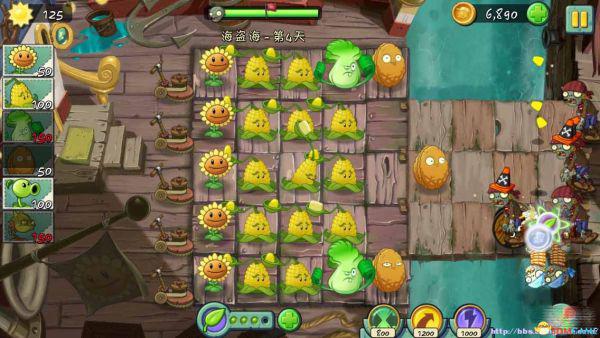 三星用奇迹白菜和坚果墙挡住跳过来的僵尸外,还有就是老海盗僵尸的鹦鹉,本关讲究技巧的前提下,还要讲叶绿素的使用,只有用好叶绿素就可以不被抢走,在鹦鹉出现时扔黄油是最快的必杀技。把叶绿素控制到最需要的时候,是本关的难点。