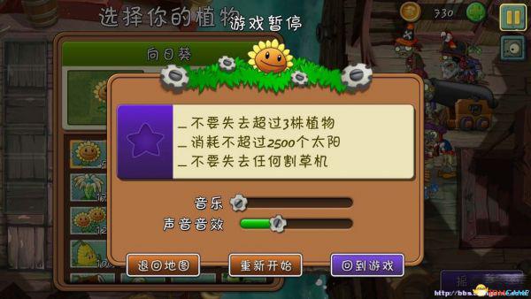 三星:不要失去超过3株植物,消耗不超过2500个太阳,不要失去任何割草机。