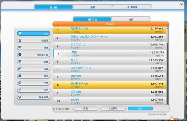 当时看到人口排行榜前十竟无国人身影,于是定下的目标,拿下第一,并且达到1500W人口。