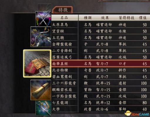 自制50宝物。可以根据需要自行修改其内容,许多宝物都是我国有名的武器,名马,当然 四圣兽也在其中。数据一点都不不和谐。希望大家喜欢。刚刚有个错误,已经修改,南化经书成名马了。 修改完毕,图片就不换了