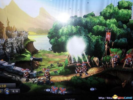 所以只需要花些时间就可以买到士兵,而此时就可以买上几名步兵,让他们出城追击盗取旗帜的敌人了。击退了两名盔甲兵敌人,我方的士兵就会夺回旗帜,往城堡方向逃,敌人就开始派出能够“行走”的敌人出来追赶,玩家的工作只需要用弩炮击退前来夺旗的敌人,让手持旗帜的我方士兵进入城堡,即可完成任务。