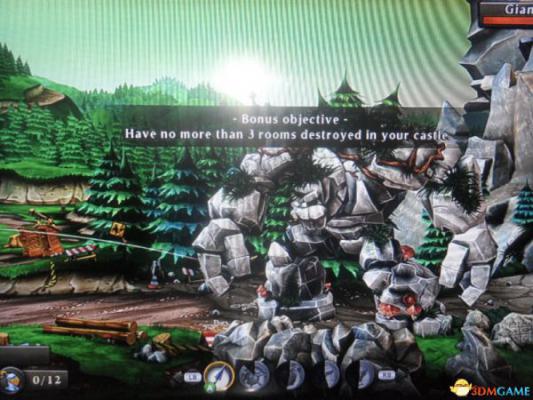 step4.此时可以使用更多的投掷物了(所有用品都解锁,任意使用),标枪、流星锤、苹果炸弹和碎石。按动三下RB键,选择碎石,碎石用来攻破城门、摧毁城堡楼层都有显著的功效。那么就先用苹果炸弹和碎石攻击土匪城堡的大木门(两样东西都可以在一定的时间、高度内按A键进行自爆和分拆)。