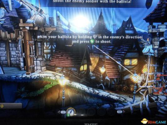 弩车会不断对Gareth发射标枪,因为有几嗰稻草人在阻隔,一开始基本无法靠近弩车,而初期会有两块箭靶在空中出现,先用弓箭模式将其击下,然后砍杀稻草人,必须提防右侧飞来的标枪,及时按住RB键进行盾挡。